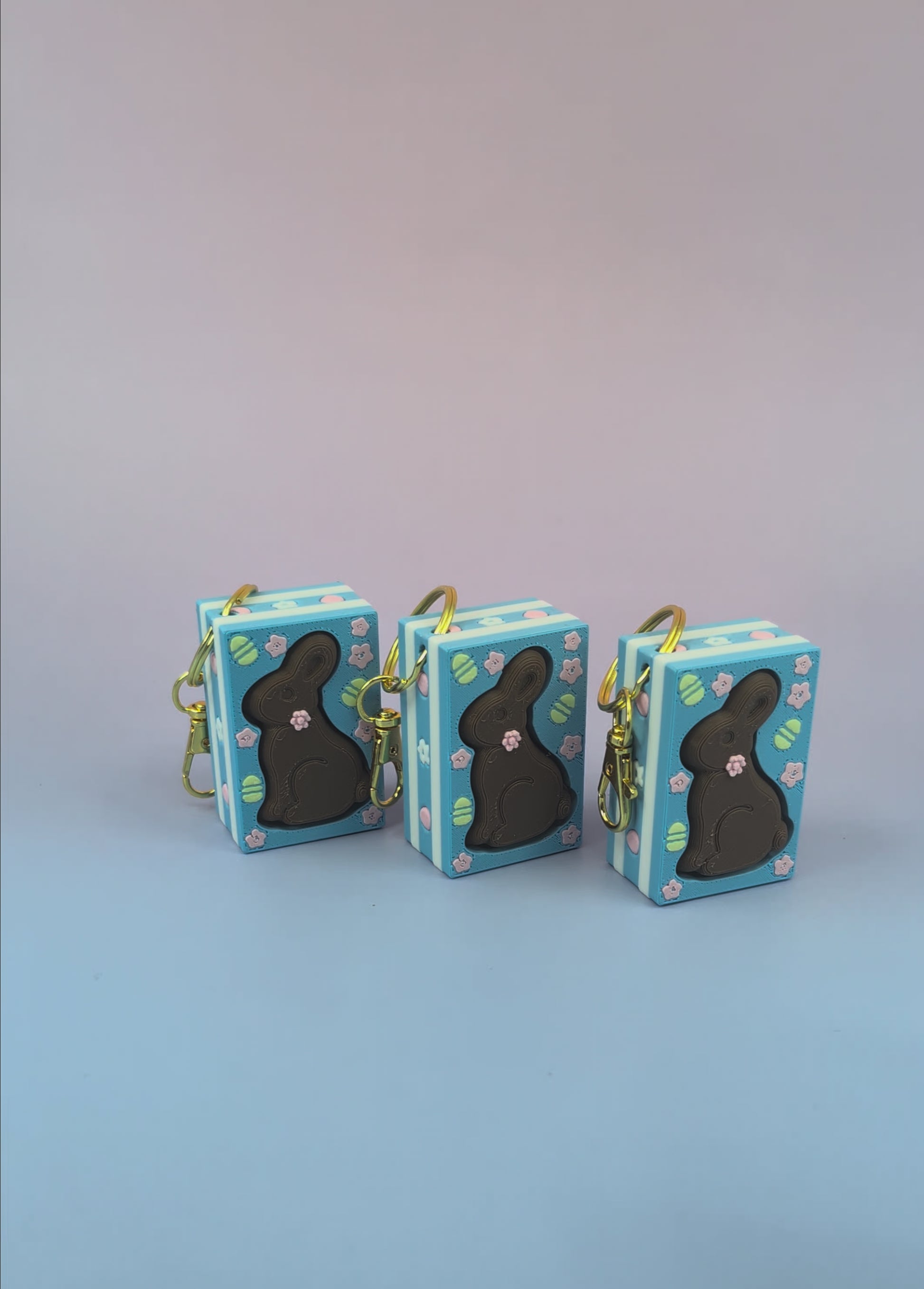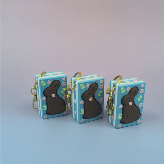 A chocolate bunny clicker with a crisp, satisfying press. Sized for pockets, bags, and desks, it works as a small tactile fidget and playful desk companion.