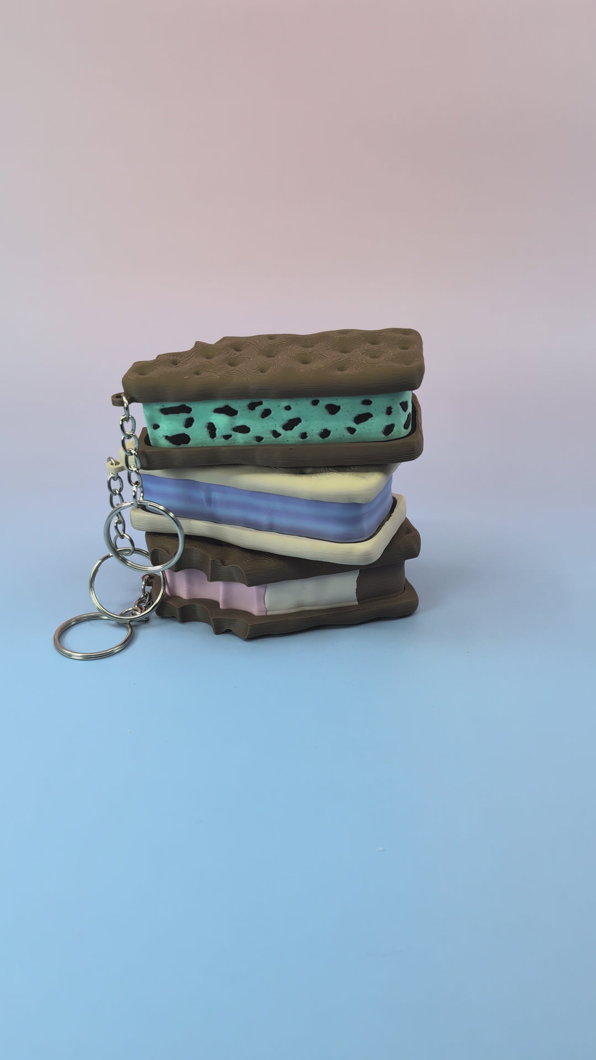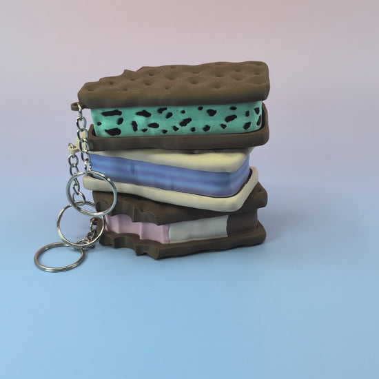 These miniature ice cream sandwich clickers look like your favorite frozen treat, complete with textured cookie tops and soft, colorful “ice cream” centers.