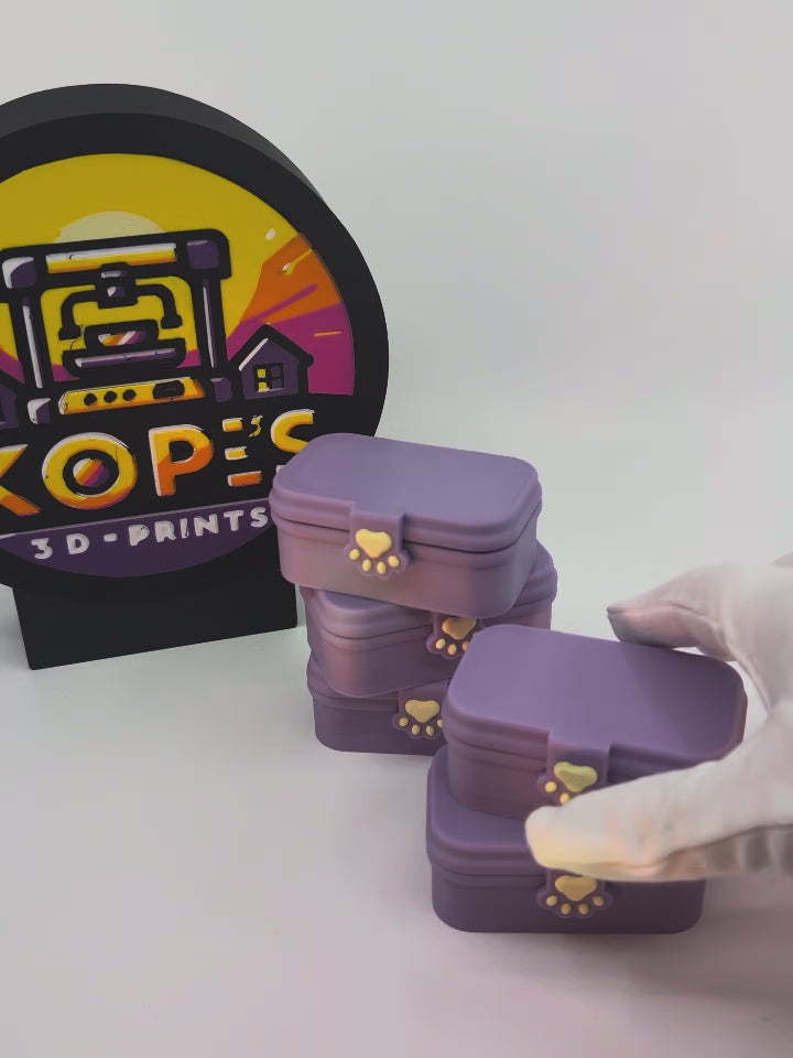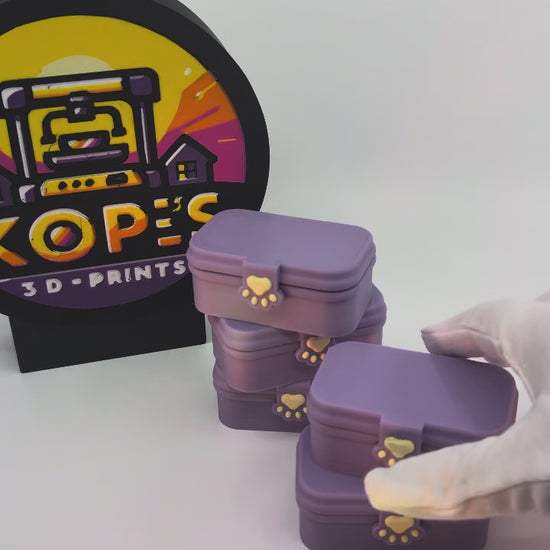 Designed for joyfully chaotic desks, this tiny lavender bento box opens to reveal three satisfying clickers tucked neatly inside.